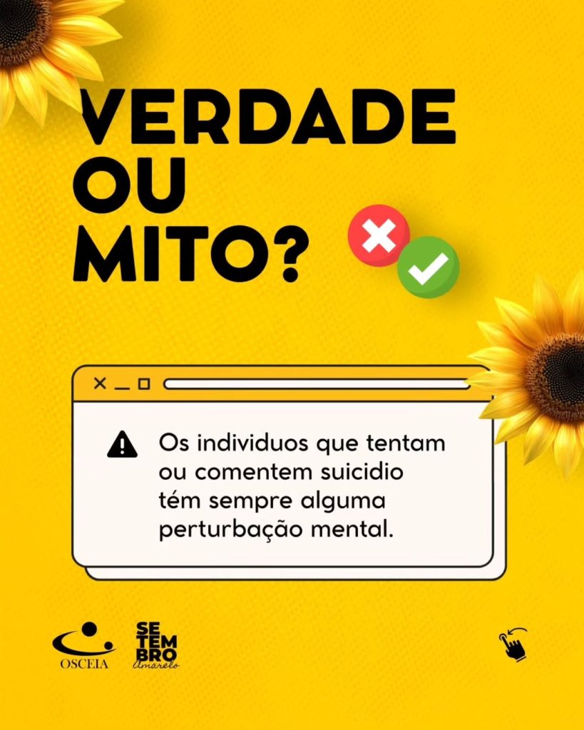 Neste mês dedicado à conscientização sobre a prevenção do suicídio, é importante desmistificar algumas crenças que cercam esse tema. Um dos mitos mais comuns é que “todos os indivíduos que tentam ou cometem suicídio têm sempre alguma perturbação mental.”